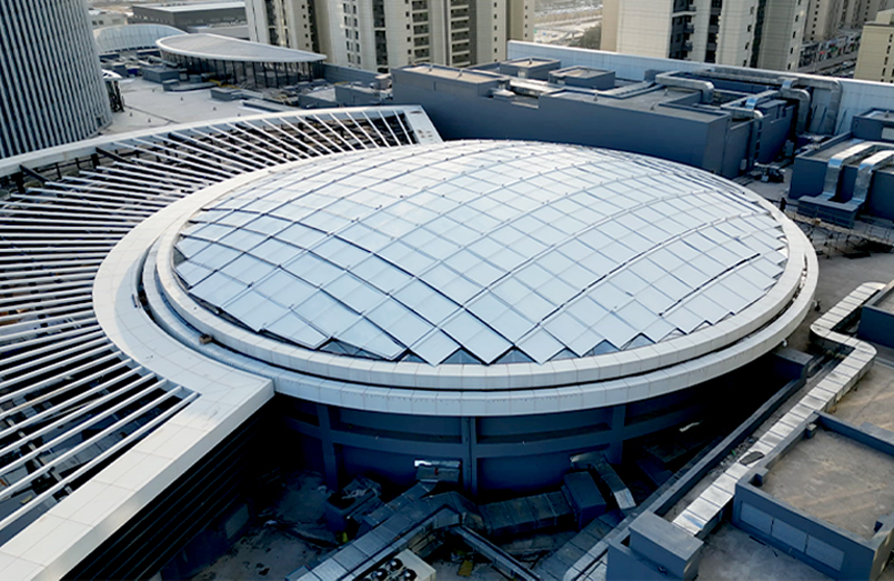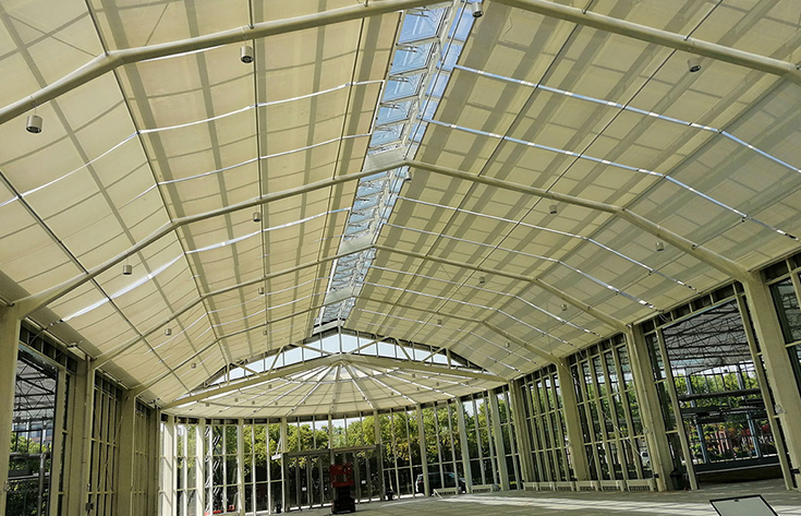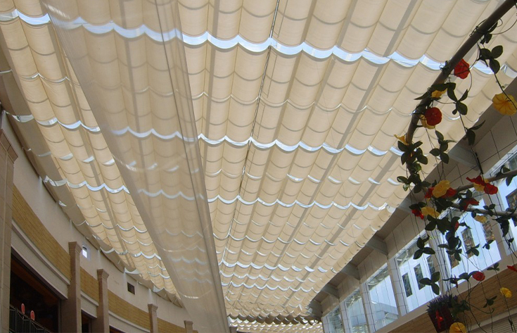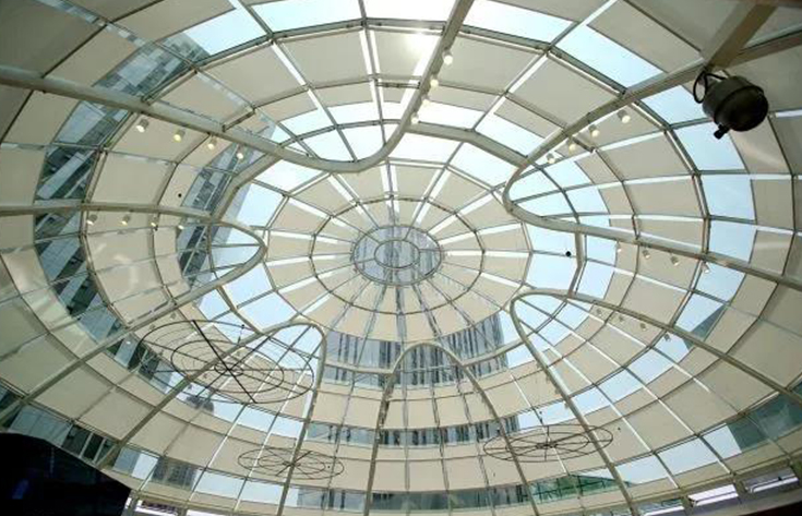 With the development of construction, various types of glass lighting roofs are widely used in hotels, stations, airport terminals, shopping malls, exhibition halls, stadiums, museums, hospitals and other buildings. A large area of the patio is covered with a variety of forms and colors of glass lighting, forming an indoor glass roof space that is not affected by the climate. The glass-topped atrium is a central space in the building with natural lighting, which can effectively organize smooth indoor space communication, and has a good orientation, and can also create a unique space sequence. Immersed in the sunny and bright indoor environment is not affected by the outdoor season, giving people a comfortable and pleasant atmosphere. However, the large area of glass and lighting roof bring natural lighting at the same time, but also bring too much sunlight, indoor light is too sufficient, the temperature is too high, greatly reducing the comfort of the mall. Therefore, it is necessary to support sunshade products to ensure the comfort of light and temperature in the shopping mall, and save air conditioning energy consumption.